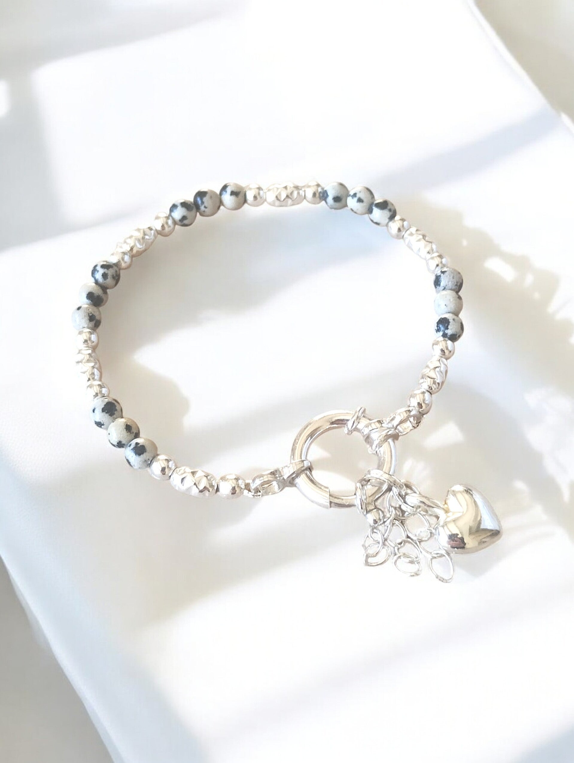 Le Jaspe Dalmatien, est une pierre naturelle qui se distingue par son aspect unique et visuel. C'est une pierre joyeuse et stabilisante reconnaissable à son fond beige clair moucheté de taches noires.