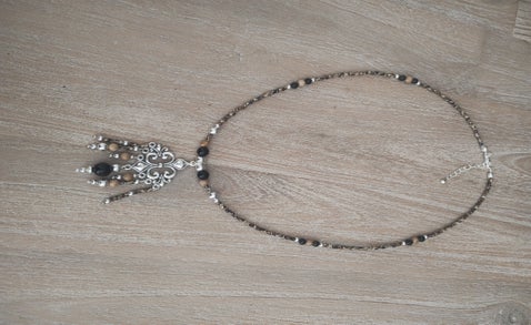 - Collier monté sur fil d'acier inoxydable avec fermoir en argent