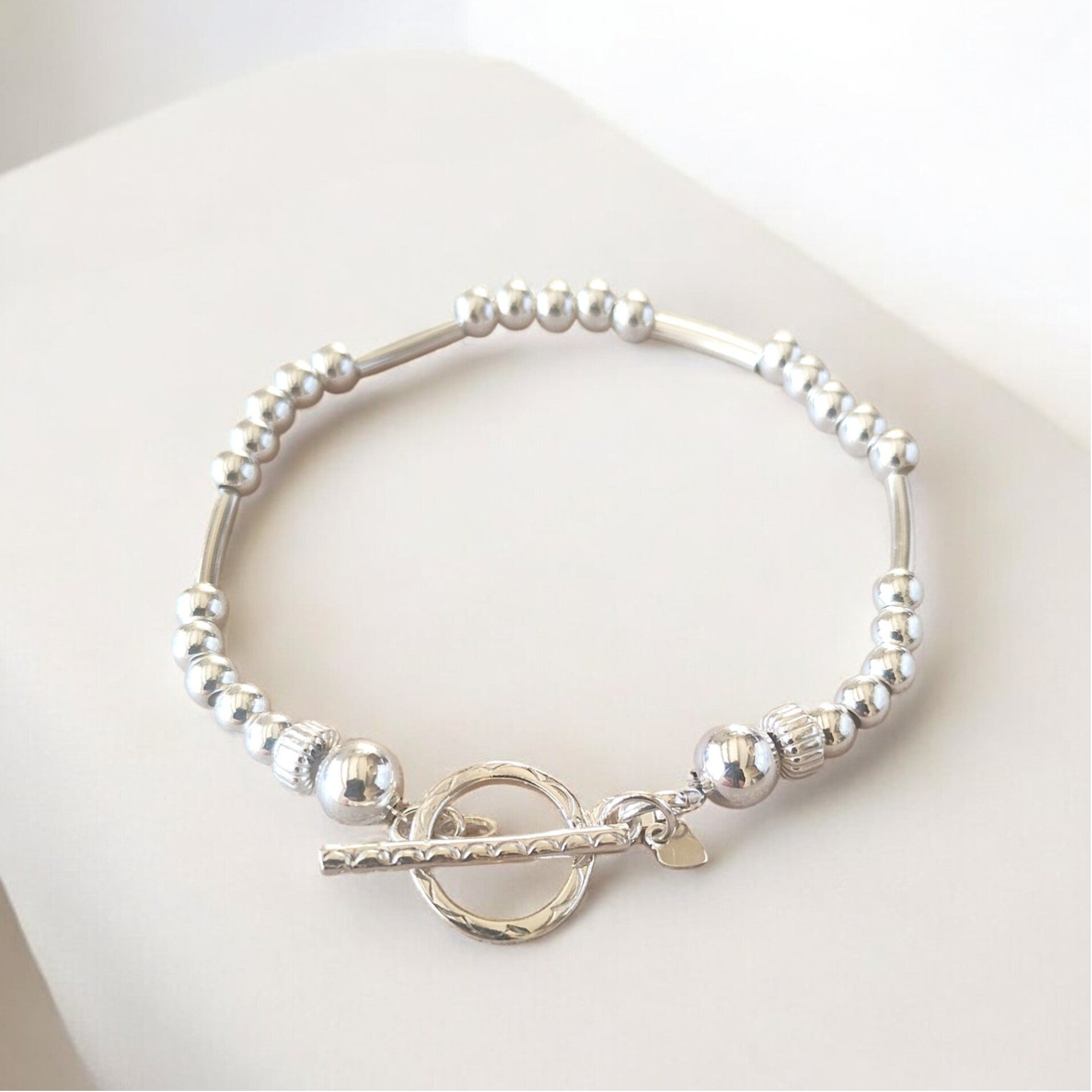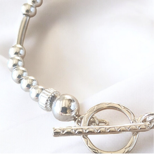 - de perles lisses et de perles tubes en Argent 925- d'un joli fermoir T ciselé en Argent 925